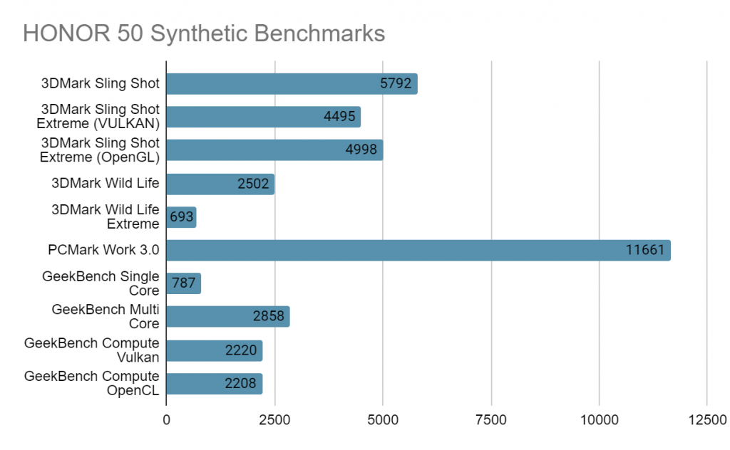 Above is the Benchmark performance, which delivers reasonable scores on each of the test between its graphics, and processor performance. The HONOR 50 is suitable for those seeking for a Mid High range performing phones.