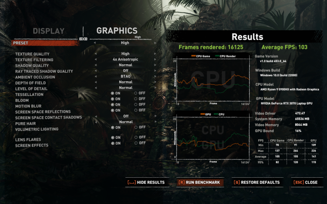 Being a gaming performance laptop, all of the games that we tested reaches well above 87FPS and ESports title is not an issue at all which be able to go beyond 120FPS. We would expect any neat future game titles are capable to run on this laptop without a sweat even though we are using RTX Studio Drivers.