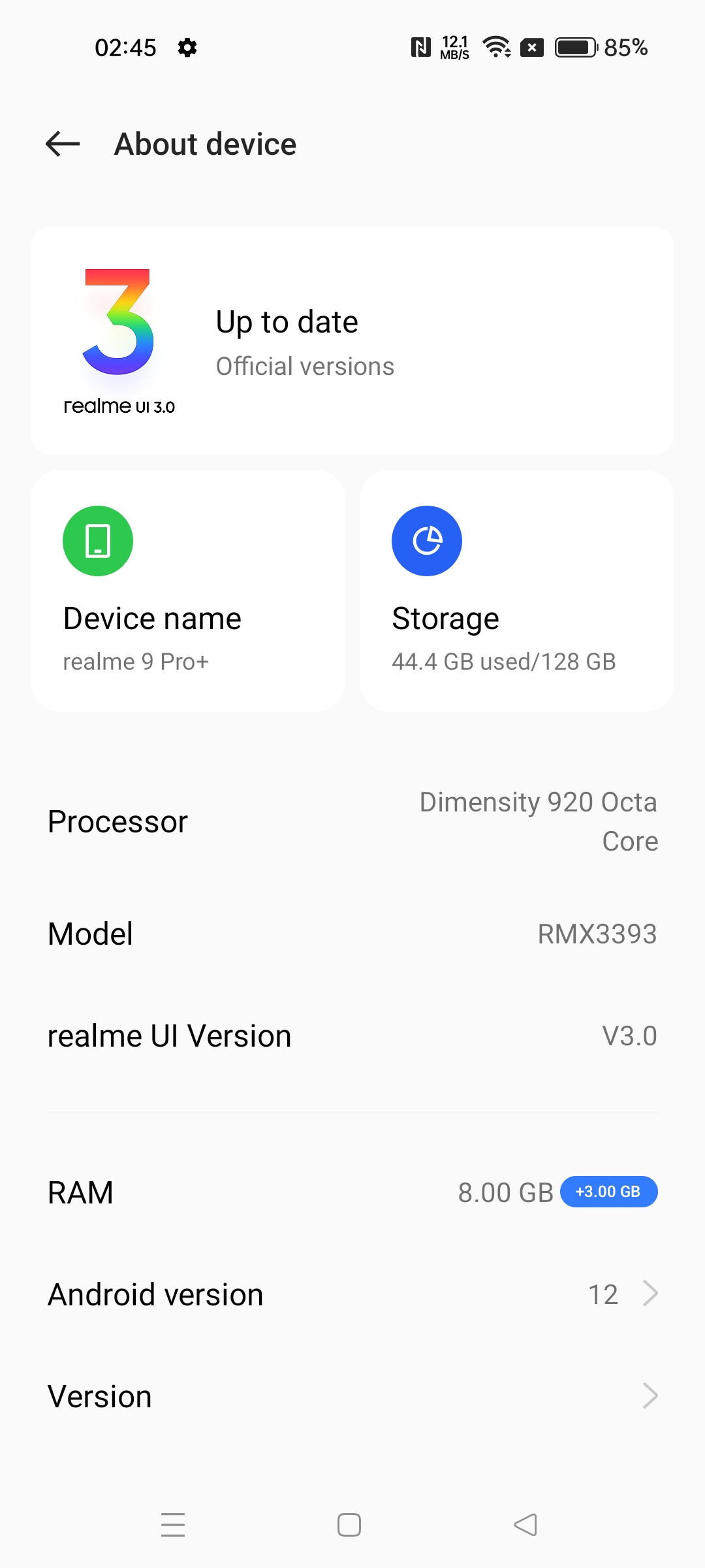 | OS + UI | Android 12 + Realme UI 3 with GMS |