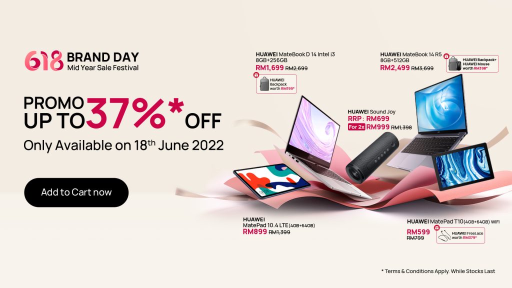 Wait no more and start adding your favourite HUAWEI products onto your cart on HUAWEI Website, HUAWEI Official Store on Shopee, and HUAWEI Official Store on Lazada. Don’t forget to check out your shopping cart on 18 June 2022.