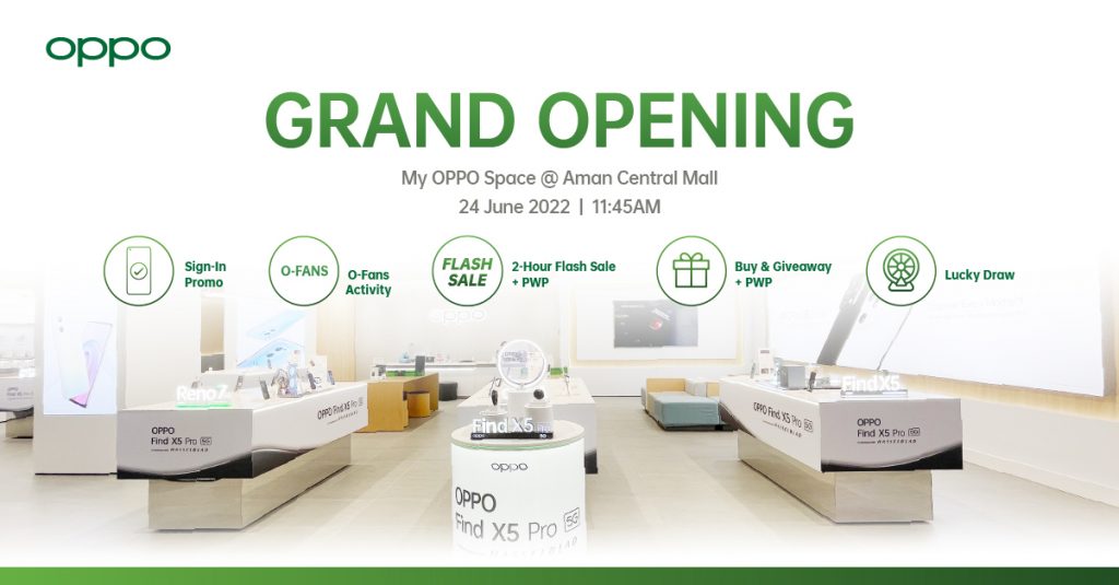 Don’t miss out on all the amazing giveaway and deals on the Grand Opening of our 15th My OPPO Space at Aman Central this Friday, 24th June 2022, 12pm. See you there! For more information, please visit https://communitymy.oppo.com/thread?id=1092791540147552261.