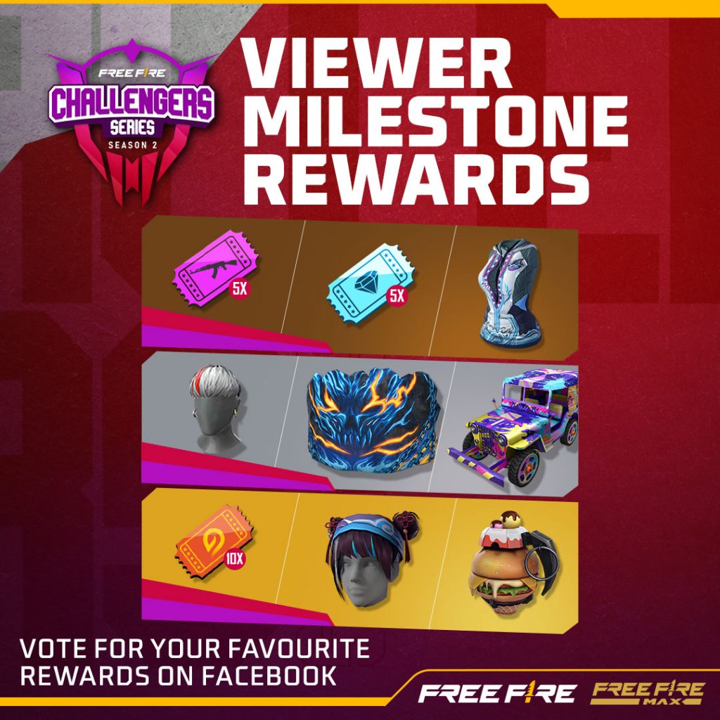 Additionally, Free Fire players – also known as Survivors – will get the chance to vote for a peak viewership milestone reward of their choice on Facebook throughout this week. The chosen rewards will then be made available through on-stream redemption codes that unlock as the milestones are reached.