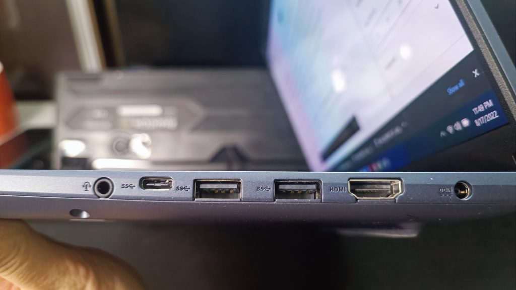 Ports wise, over left you have 1 USB 2.0 port with 2 LED indicates power and charging, on the right you have the power adaptor port, 1 HDMI 1.4 port, 1 USB 3.2 Gen 1 Type-C for data only, 2 USB 3.2 Gen 1 Type-A and a Audio 3.5mm combo jack.