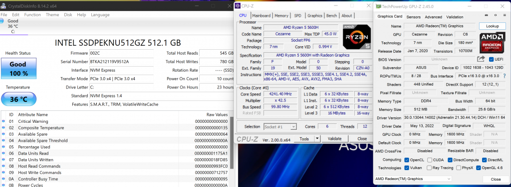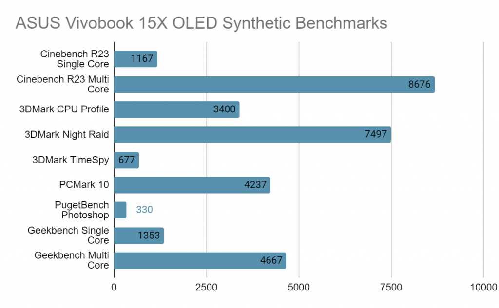 The ASUS Vivobook 15X OLED is powered by AMD Ryzen 5 5600H 6 Core Processor or AMD Ryzen 7 5800H 8 Core Processor with Integrated AMD Vega Graphics, 8GB of DDR4 3200Mhz and 512GB of NVME storage. For those who are interested with the benchmark results, take a look below.
