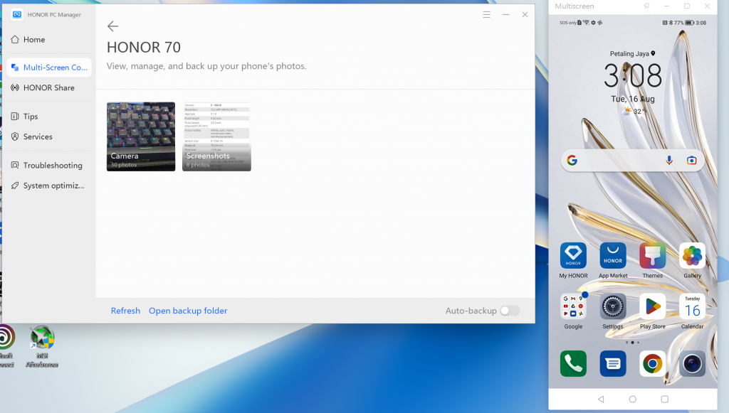 As part of the MagicUI, if you are using a compatible HONOR MagicBook, you can pair it up with your HONOR 50, 70 or the Magic4 Pro series of phones with HONOR PC Manager so you can display your phone screen over, share files, backup and sync up together as a productivity ecosystem. Well, if you happen to have HONOR earbuds and tablet, it became as a 360 all round powerhouse just by using HONOR branded product.