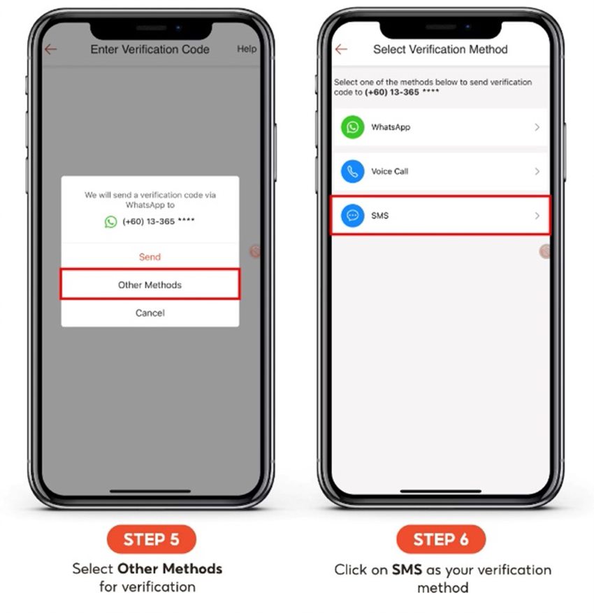 - Obtain a verification code via WhatsApp, voice call, or SMS