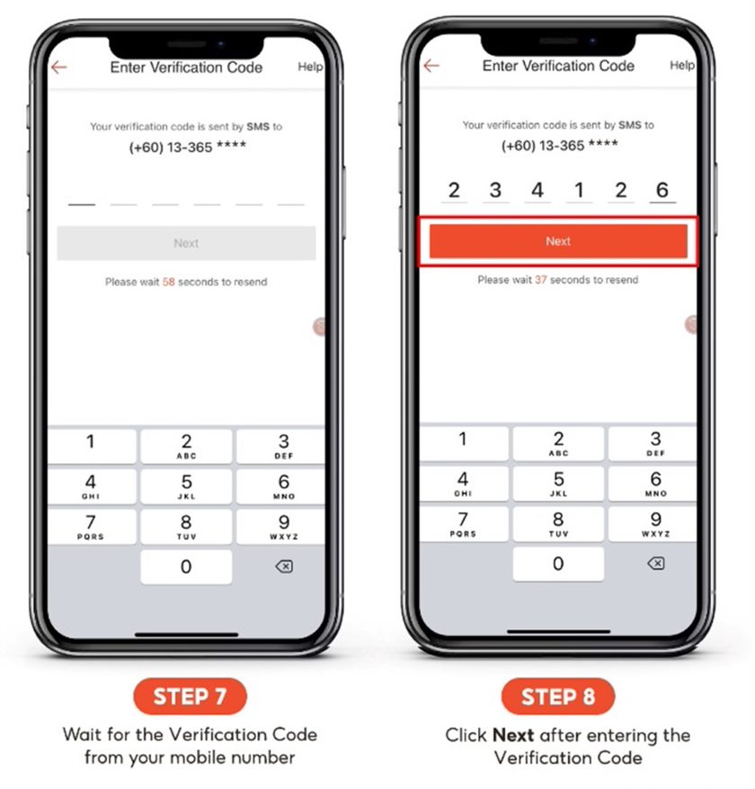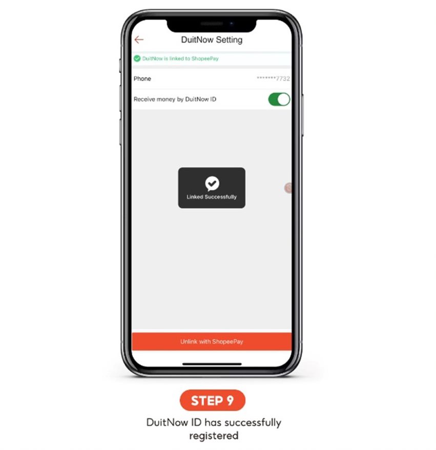 - Key in the verification code to successfully register your phone as the DuitNow ID for ShopeePay