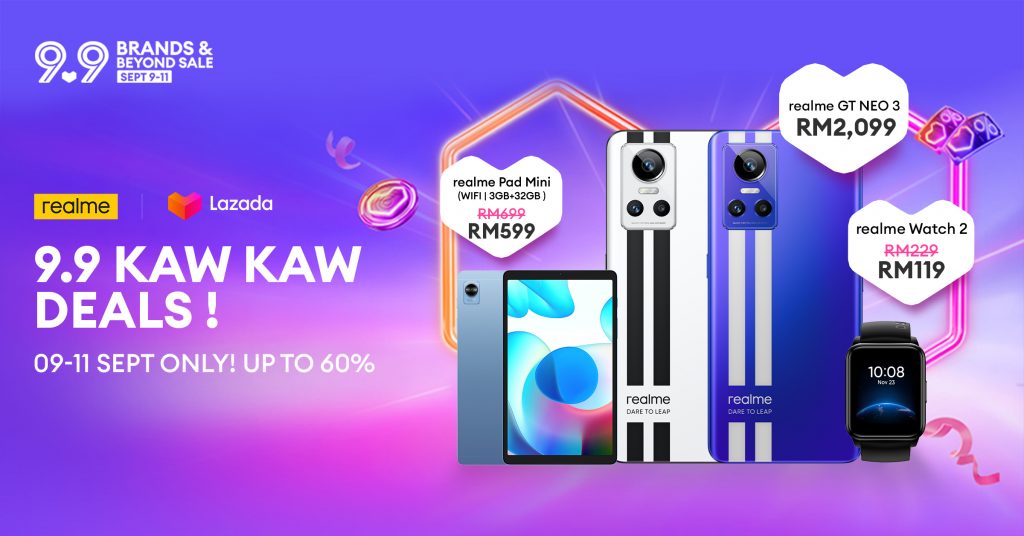 realme also announces its upcoming realme Lazada 9.9 KAW KAW DEALS, with exciting promotions of up to 60% off! Fans can keep a lookout for amazing deals across a wide range of products, including the realme Watch 2, realme Pad Mini WiFi, realme GT Neo 3, and more. Don’t miss out on the excitement from 9th to 11th September 2022 on realme Malaysia’s Official Online Store on Lazada