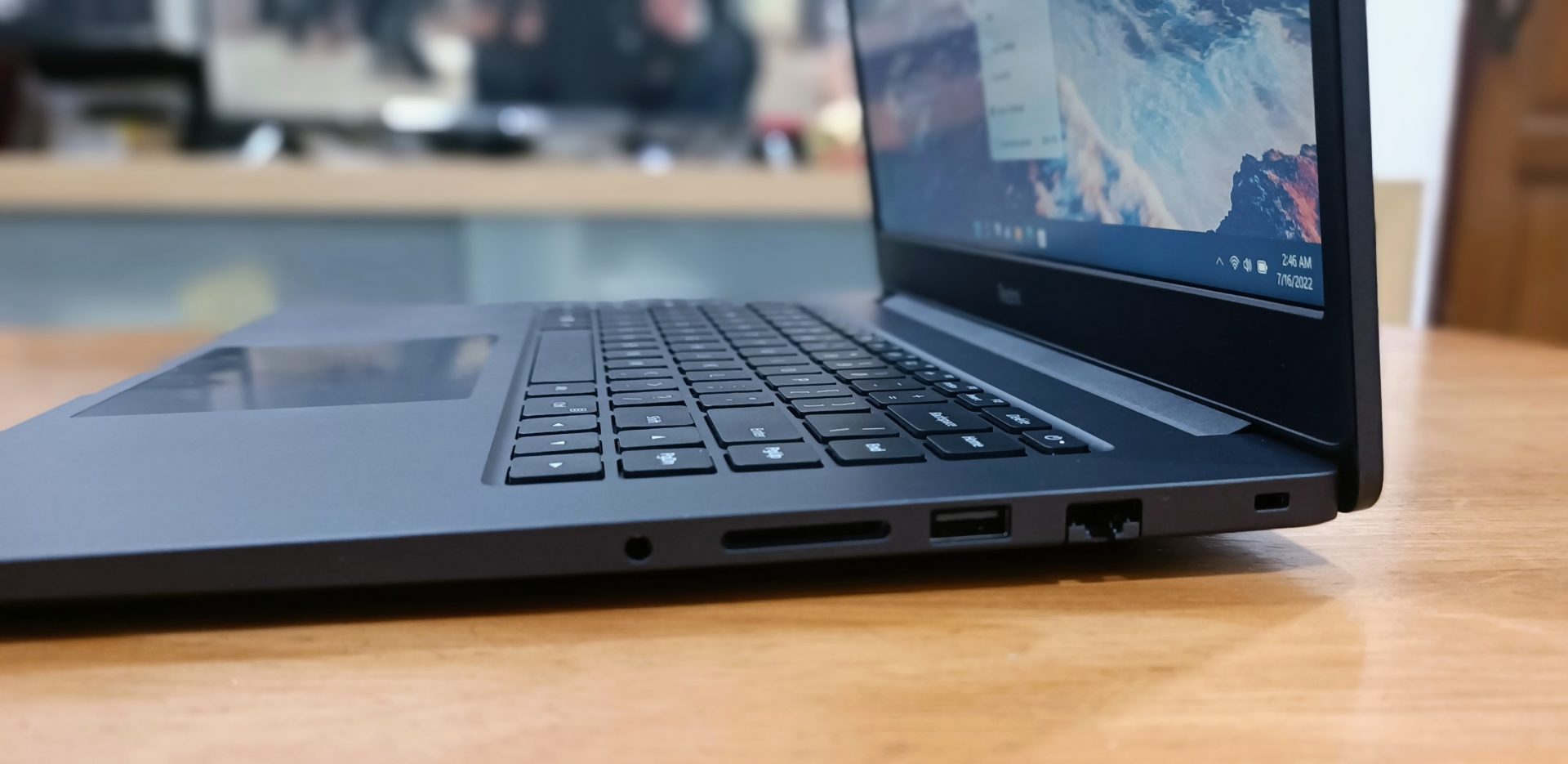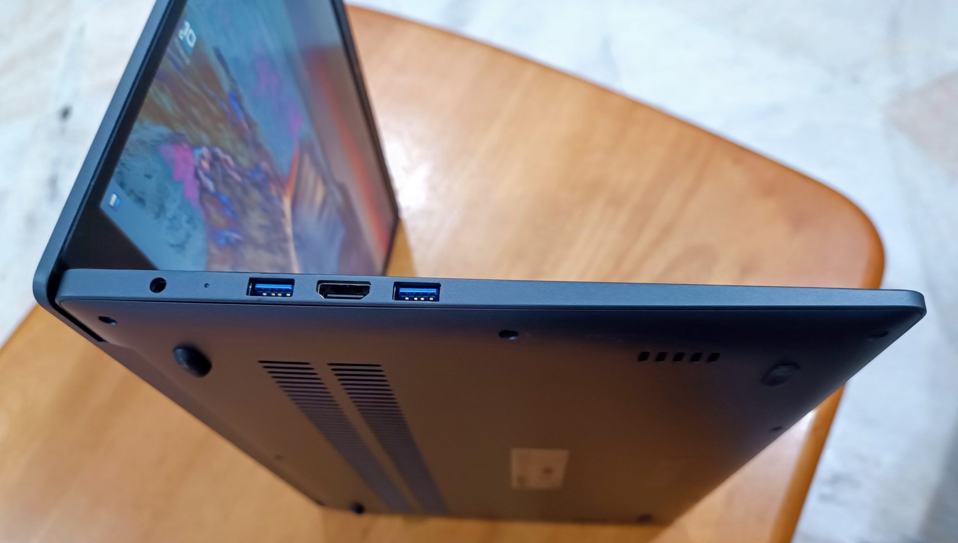 Ports wise, you get the standard 2 USB A 3.0 ports, 1 USB A 2.0 port, an SD card reader, One DC in jack, a Gigabit Ethernet port, headphone/microphone combo jack and one HDMI port. These ports are good as a starter point Laptop, which the only thing lacks is USB type C port which I wish they could at least include one. You get a fairly serviceable 720P webcam for your video conference app use, but since it’s and affordable laptop, no complains there.