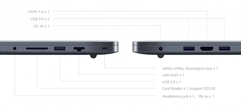 | Ports | HDMI 1.4 x 1 USB 3.2 Gen1 x 2 USB 2.0 x 1 Kensington lock Ethernet (Lan) 3.5mm headphone jack SD 3.0 Slot |