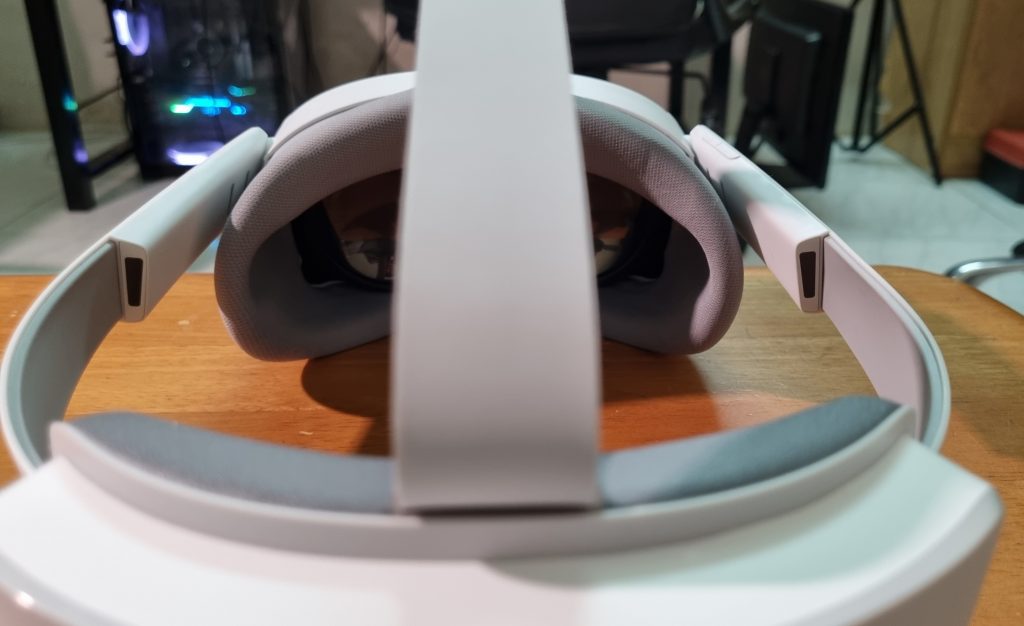 The PICO 4 carries a weight of 586 Grams, which is consider around the same weight with most of the HMD today, however most of the weight is distributed in 2 ways, batteries located at the back with fabric padding and the rest of the component is located directly at the HMD area, which makes overall balanced in weight distribution. Since I have touch on the padding, yes it is fabric and I know some prefer silicone pads, it is fine if this HMD is played between just with few person that you know, if not, it is better to look for third party replacement padding or get VR eye/face mask which is disposable. There is no 3.5mm audio jack, which means Bluetooth may be very well the only answer if you wish to connect it with your own headphones, or earbuds.
