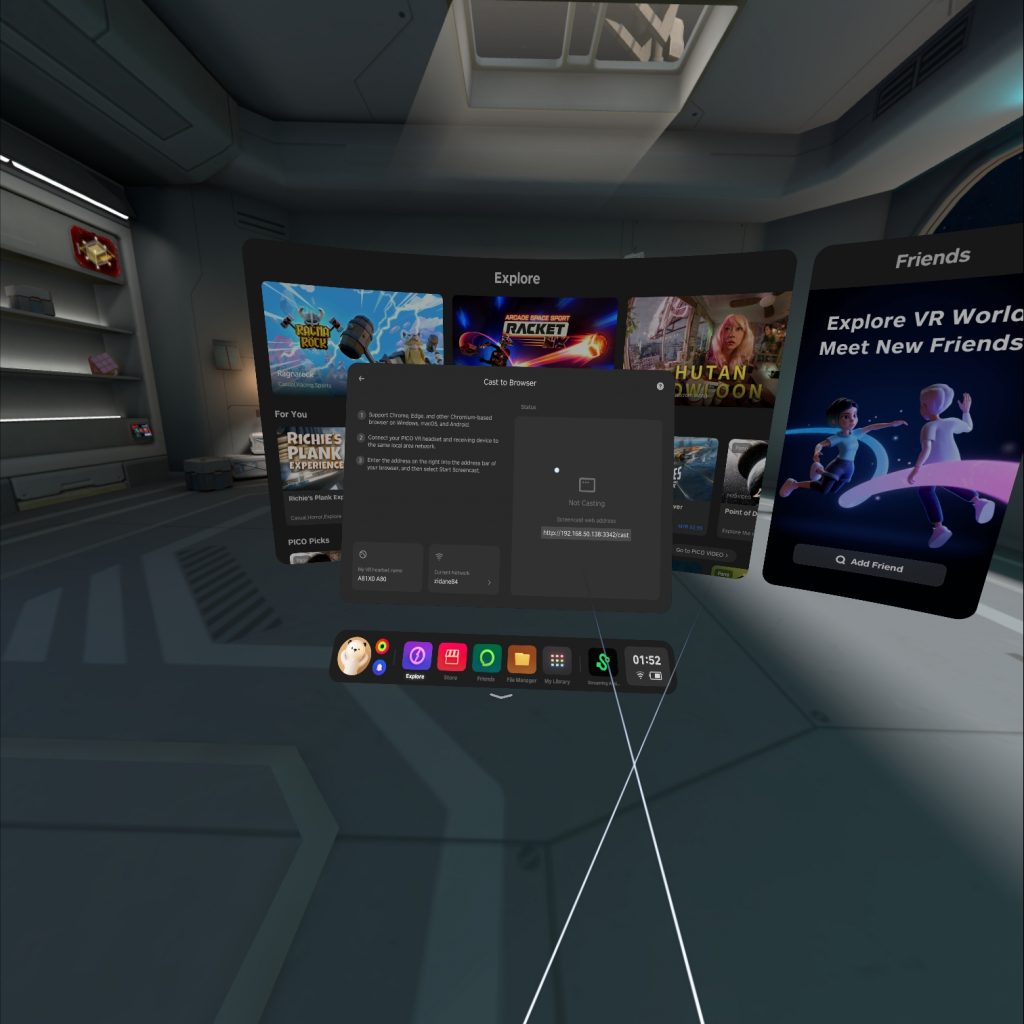 OS wise, the HMD is driven with PICO’s own PICO OS 5, which is quite a step up from OS 4.7 available on PICO 3/Neo Link. The experience is simple and easy to use, with bright icons showing what it does and better fonts with limited themes customisation on user side. Overall, day to day navigation is very satisfying and no complains there. IPD can be adjusted via the display as well where 65mm seems to be just nice for me, even competing brands, but your mileage may vary. Host of defaulted apps are available, from file manager to video player which provides PICO’s own streaming services, TikTok profile login and I have no trouble accessing it over my NAS to enjoy my movies, otherwise you can also stream online from hosts of services such as Netflix or Disney+. It does have a built in web browser too. In the end this is an inside-out Android VR HMD, if you are an seasonal Android user, navigation should not be hard.