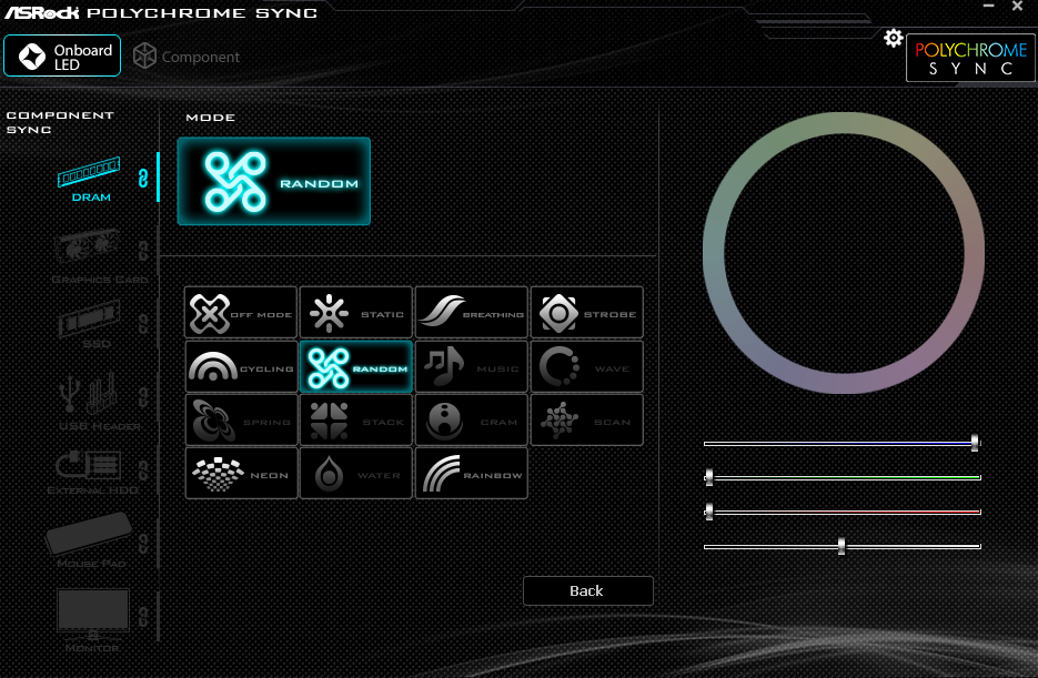 Let’s start with the software, almost all ASRock motherboards has the ASRock Polychrome Sync, which is an app for selecting various RGB modes, as long the components are compatible, you can sync all of them together, including the motherboard RGB LED located below the southbridge heatsink area.