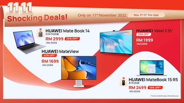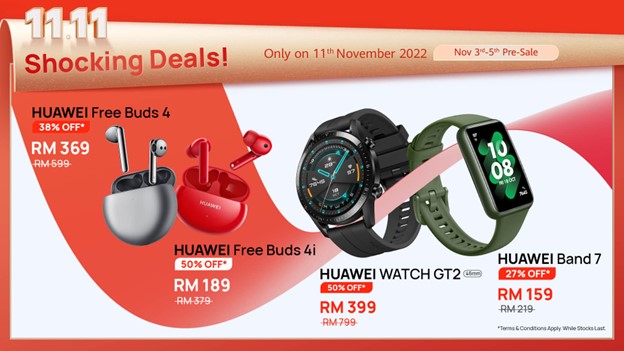 Mark your calendar and be sure to grab your favourite gadgets this 11 November on HUAWEI Official Website, HUAWEI Flagship Store on Lazada and the HUAWEI Official Store on Shopee.