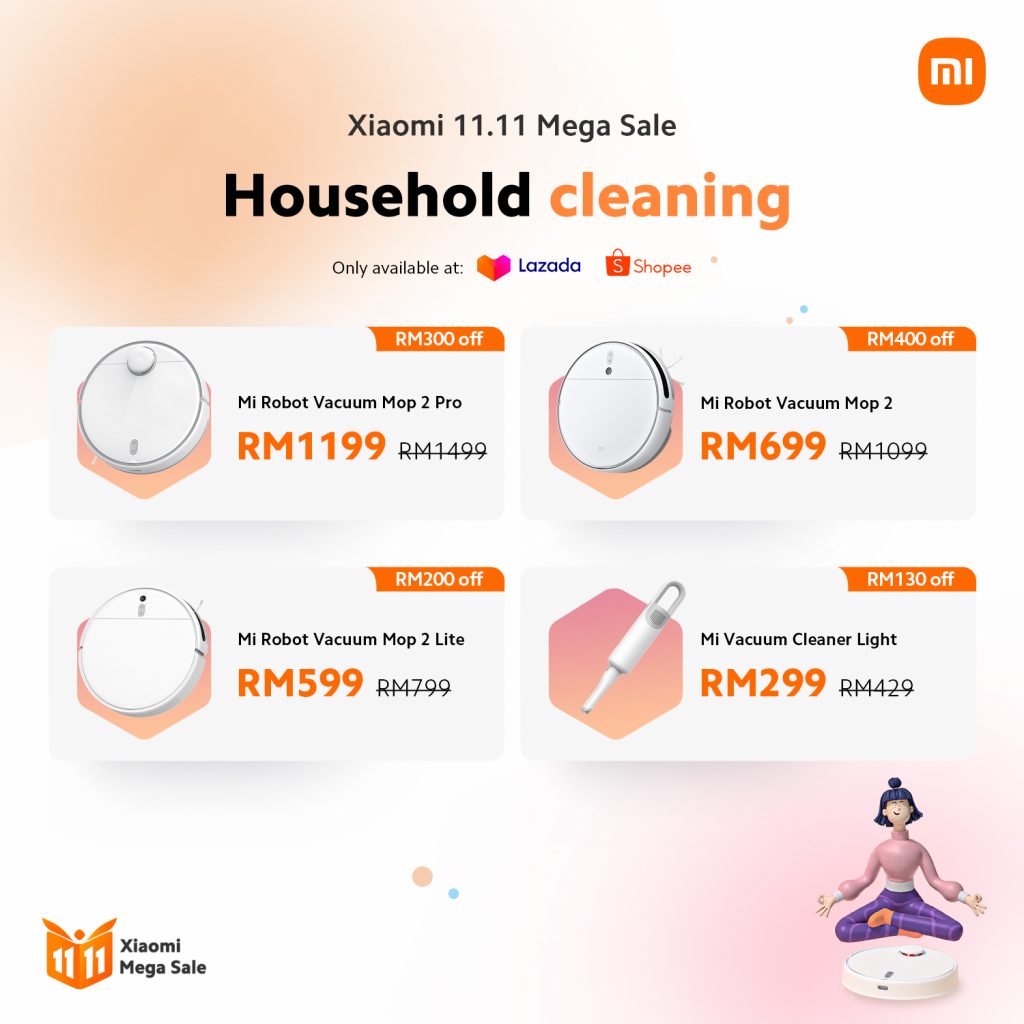 | Mi Vacuum Cleaner Light | RM 429 | RM 299 | Lazada | Shopee |
