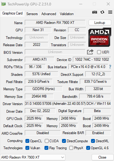 We will be using the below as a test setup for the Radeon RX 7900 XT for the purpose of the benchmark, with comparison used on other cards, SAM/BAR is enabled.