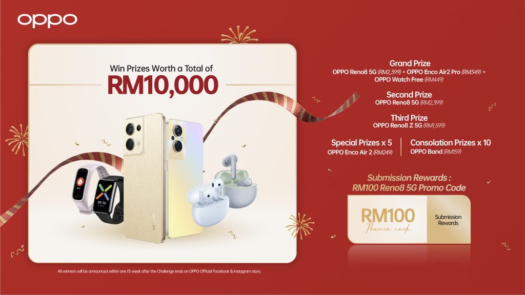 With prizes worth a total of RM10,000 up for grabs, Malaysians can enter this fun challenge from now till 7 January 2023 and stand a chance to win prizes such as a brand new OPPO Reno8 5G. To enter, follow these simple steps below: