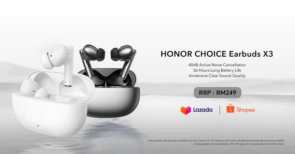 HONOR CHOICE Earbuds X3 is an active noise cancellation earbud that is up to 40db, giving users a full-scene noise cancellation experience for daily commuting, sports and leisure. With 500mAh battery capacity, user can now be free from battery anxiety as the HONOR Choice Earbuds X3 is well equipped with 36 hours long battery life. As an intelligent device, HONOR CHOICE Earbuds X3 priced at RM249, it comes with dual-device connect feature that enables users to connect with two devices simultaneously.