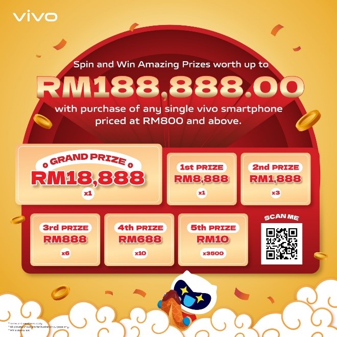 Malaysians can participate in the campaign by making a purchase at the nearest vivo Concept Store, Chain-store Partners (Aeon, All IT, Celcom store, Chan furniture, Courts, Digi, Giant, Harvey Norman, Lionmas, Lulu, Maxis, PC Images, Senheng, Sentriq, Thunder Match, Urban Republic) or vivo authorised dealer store.