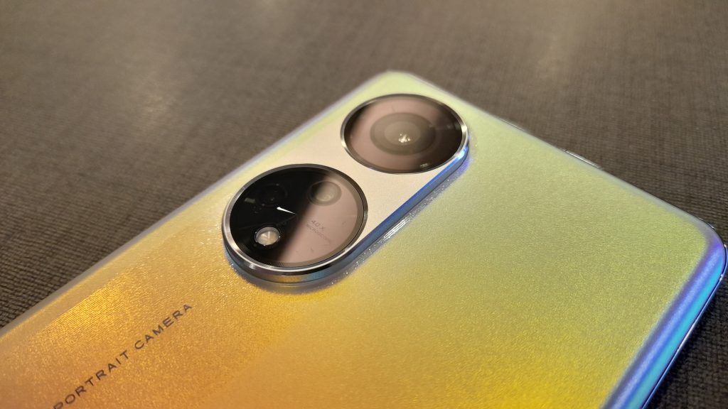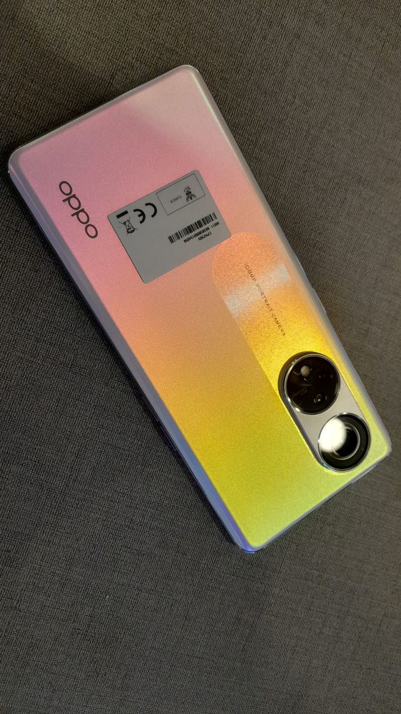 Kicking off our review with the unit’s external design, it actually resembles the Reno 8 Pro quite a lot (and the A78 to a certain extent), with that familiar round cut-out front camera on the front and the general side button layout, as well as the Oppo’s signature iridescence plastic design at the back of the phone. The only noticeable differences are the screen and camera overalls. The screen itself has a rectangular rounded edge with the screen curving outward stretching to the back. As for the cameras, it is located at the top left corner sitting on top of an oval-shaped island. Inserted vertically, the two main cameras composes of the 108MP camera on the top (f/1.7, 24mm (wide), 1/1.67″, 0.64µm, AF) and two 2 MP secondary cameras (f/3.3, 34mm (microscope) & f/2.4, (depth)), one of which has a 40x zooming lens. Retaining most of the Oppo Reno 8 series’ aesthetic by making minimal changes so the 8 T 5G won’t spin off too further away from its main entry counterpart.