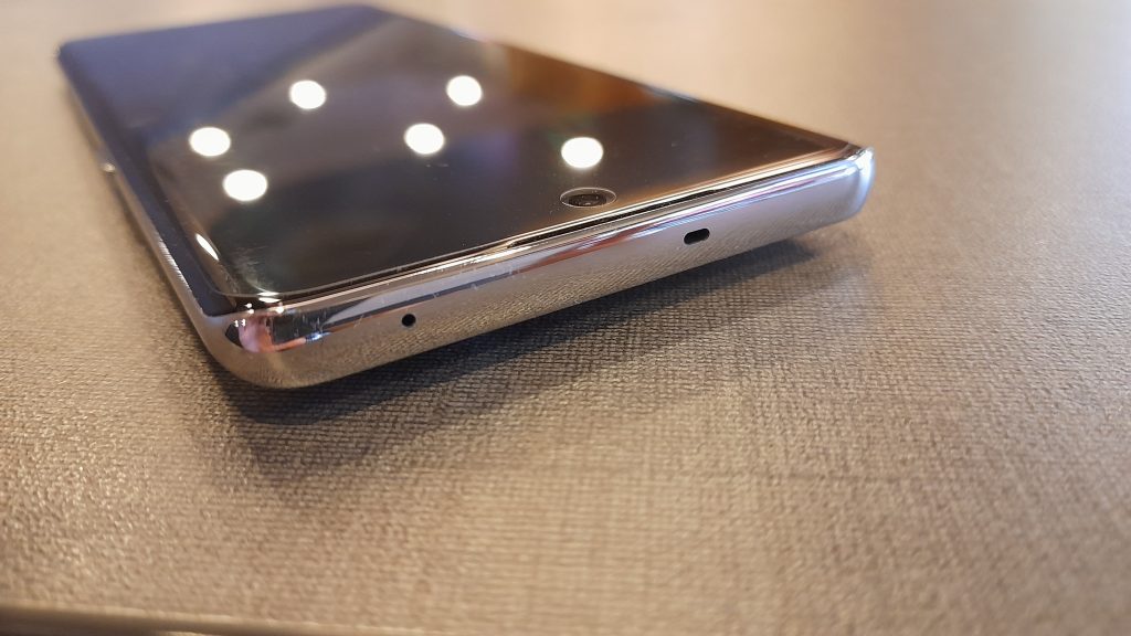 Other general layouts include the speakers which are located at the top and the bottom respectively, making it a duel stereo speakers; The primary and secondary microphones are also located at the bottom and the top, respectively; There are no headphone jacks so only Bluetooth headsets are able to connect to the audio; And then there’s the SIM card slot that houses a dedicated SIM tray. All of these are carved onto a metallic chrome frame.