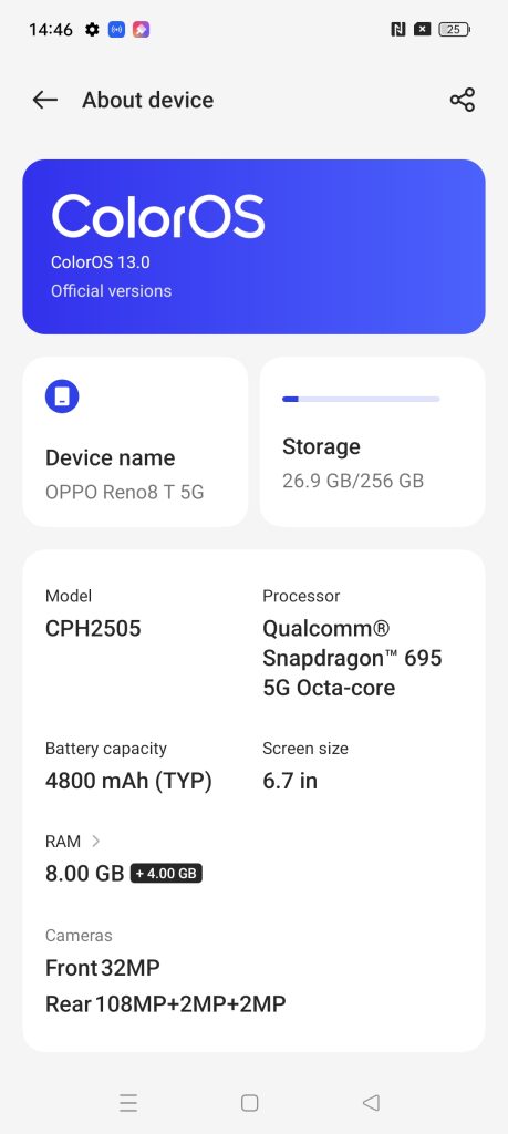 For those who are keen to know about the Oppo Reno8 T 5G’s benchmarks and capacities, you may refer to below: