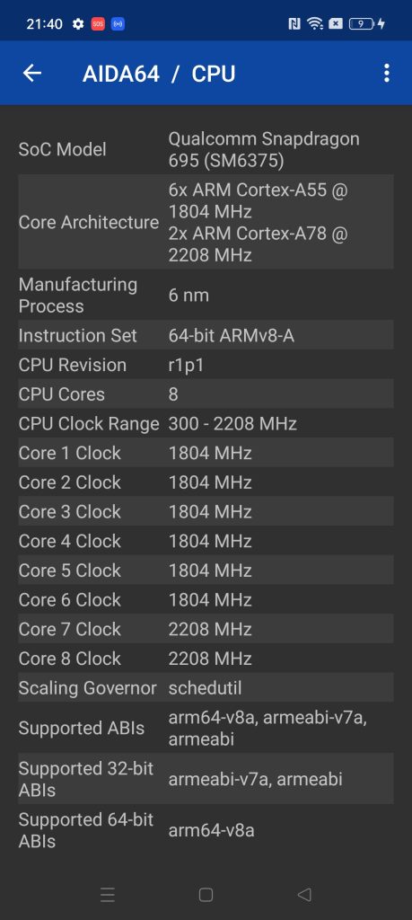 | Processor | Octa-core Qualcomm SM6375 Snapdragon 695 5G |