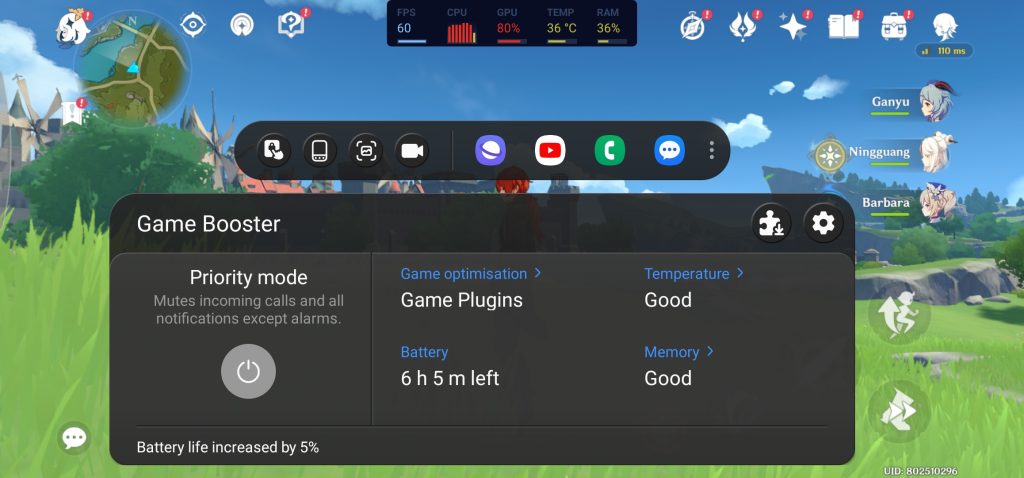 From the Software and experience, the Galaxy S23 Ultra is running Android 13 with OneUI 5.1. These bring new features such as improved Gallery App, Expert RAW, Dynamic weather widget, better Bixby Routine, Pause USB Power Delivery when gaming, Multiple SPen use, screenshot folder renaming and so much more coming with Samsung committed in further supporting the OS and UI update for at least four years. Now to the experience, all I can say it is a premium one, from battery side, it lasts the whole day on my daily use from gaming, a few note taking, 3 episodes of series and of course, taking a few pictures for social media consumption, a combination of 13 hours use hitting down to 15% before requiring a charge, which will get you back to about 75% in 30 minutes time. If you have a Galaxy Buds2, you can use the Galaxy S23 Ultra to wirelessly charge back your earbuds with ease, making it a side by side companion for compatible Galaxy accessories. If you love gaming on it, our test on Genshin Impact will be able to keep up nicely on a 60FPS almost all times over medium settings.