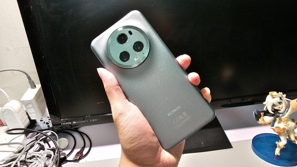 At the front, it looks all normal, in fact quite resemblance towards the last year’s HONOR Magic4 Pro, with all the curved display but one slight improvement that they have done its the ergonomics, holding it seems very comfortable, even without installing the included case, it is still very comfortable to hold and grippy. Over to the back of the phone you will spot the triangular camera setup which looks interesting and color finishing does shows that HONOR did all the refinement as good as it gets. The frame sides of the phone is a good one, trying to light bending did not budge any of the parts, which the quality overall is there.