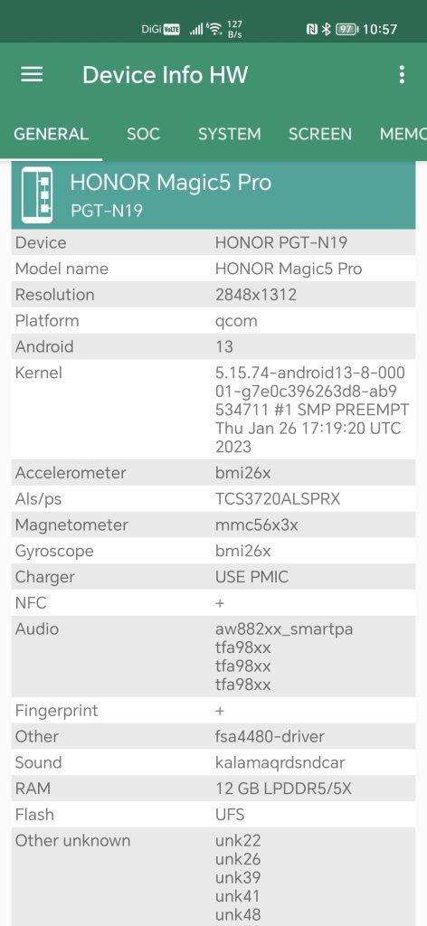 The HONOR Magic5 Pro packed some serious internals also. For a start, it came with the flagship Qualcomm Snapdragon 8 Gen 2 Octa-Core SOC with 8GB of RAM and up to 512GB of internal storage. If you wish to add more storage there is no options for it, leaving certain alternative such as cloud backup such as Google Drive will be a good choice if you ever out of storage internally, but I find it ok so far since most Android users uses cloud drives to save and backup. Since we touch on the RAM also, you have HONOR RAM Turbo too, which is a dynamic virtual memory taken from internal storage up to 7GB, that will make your application switches faster over 20 applications/games at the same time with close to no lag times to it. All your usual internals such as 5G, AX wifi, Bluetooth 5.x, NFC. The HONOR C1 RF chip is also a new inclusion to make signal smarter, stronger with smart redirection and sensing of signal, ensuring quality of calls and data transfers optimal while keeping your battery usage optimal with other hardware.