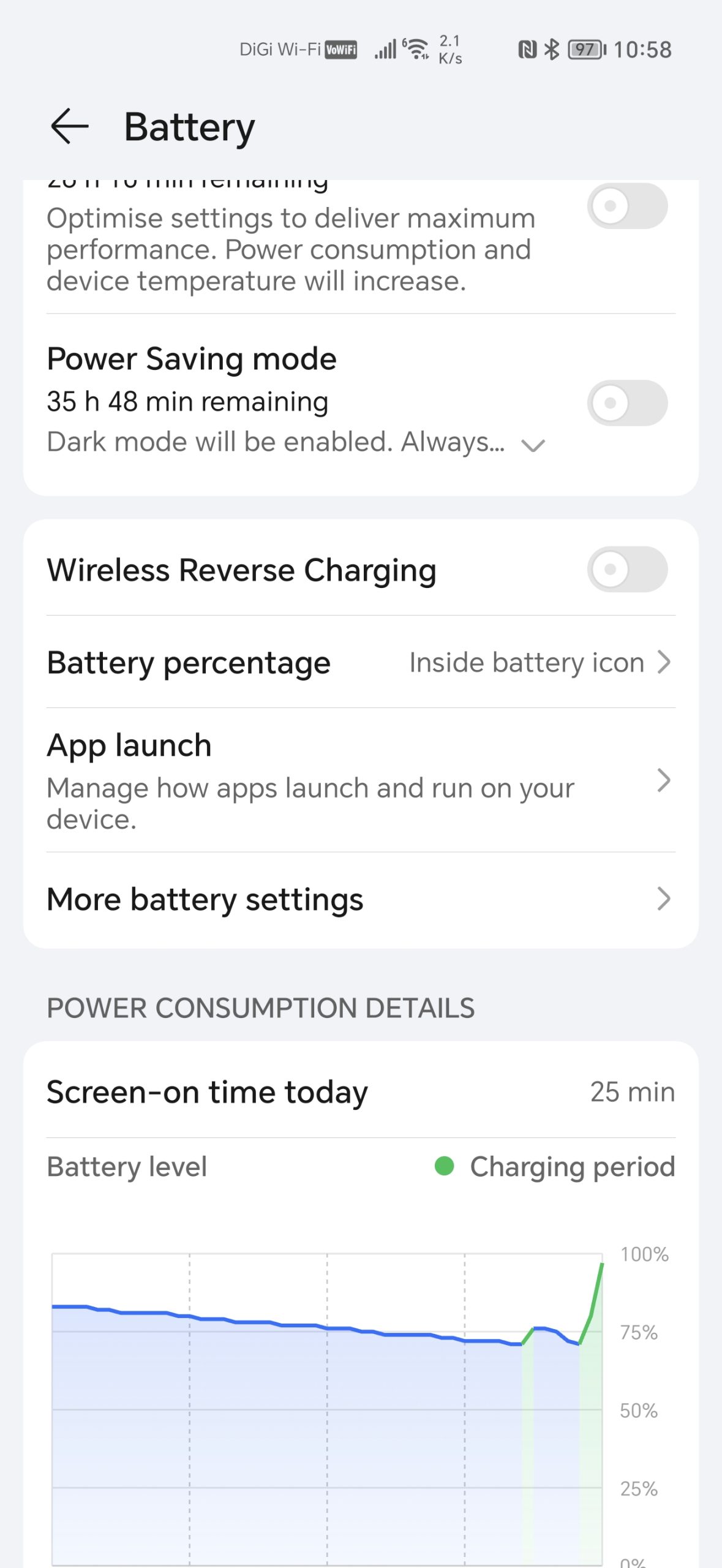 With the 5100MaH battery capacity, usage will last about 11.5 hours of usage that translate to a whole day of use, maybe another charge in the late evening will get you going again. Charging from empty to 100% with the included HONOR 66W Supercharge takes about an hour, which is good enough over my daily usage and it is within expectation.