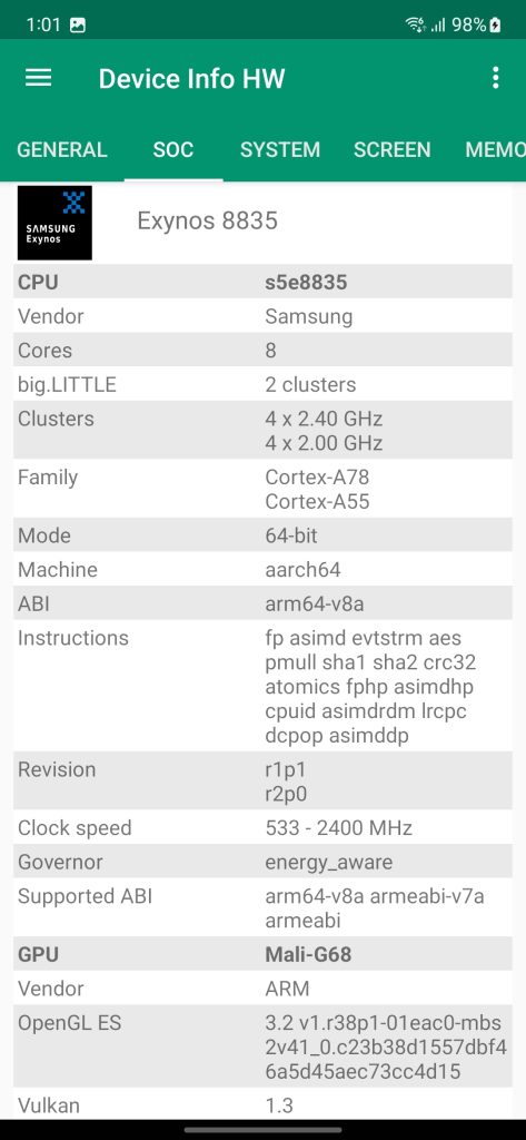 Display | 1080 x 2340 pixels, 6.4 Inch, Super AMOLED, 120Hz, HDR10+, 1000 nits |