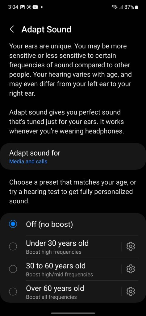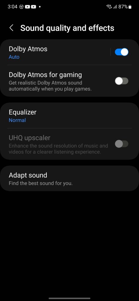 Audio wise, we did notice a decent minor improvement over last year’s Galaxy A53 which still carries a similar loudness with the dual speakers, but the A54 delivers a slightly punchier audio quality out from it, in part this is also thanks to the inclusion of the Dolby Atmos inside and additional equalizer customisation should you wanted to do that, to add there is also an adapt sound tuning with your favorite headphones or TWS to match your hearing aid, so that you can hear comfortably, especially good for all ages as well.