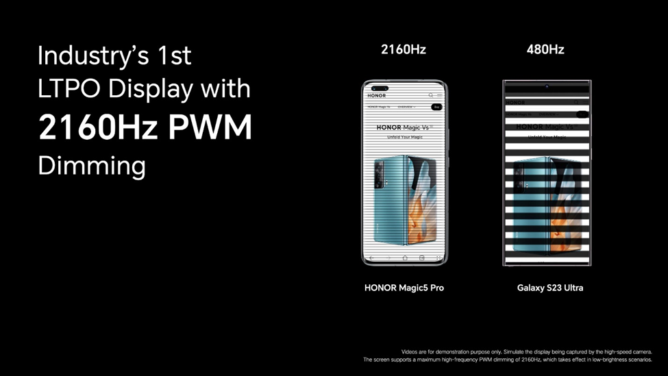 Bringing the industry’s first 2160Hz PWM dimming technology to LTPO displays, HONOR ensures that the HONOR Magic5 Series reduces fluctuations in screen brightness and the occurrence of flickering, further minimising eye strain and providing a comfortable viewing experience, even in low-light environments. Such focus demonstrates HONOR’s aim to incorporate eye care features into its users’ watching comfort.