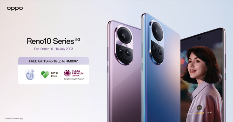 The OPPO Reno10 Series 5G will be available for pre-order in Malaysia from July 6th to 14th, 2023. Customers who pre-order during this time will receive the following gifts: