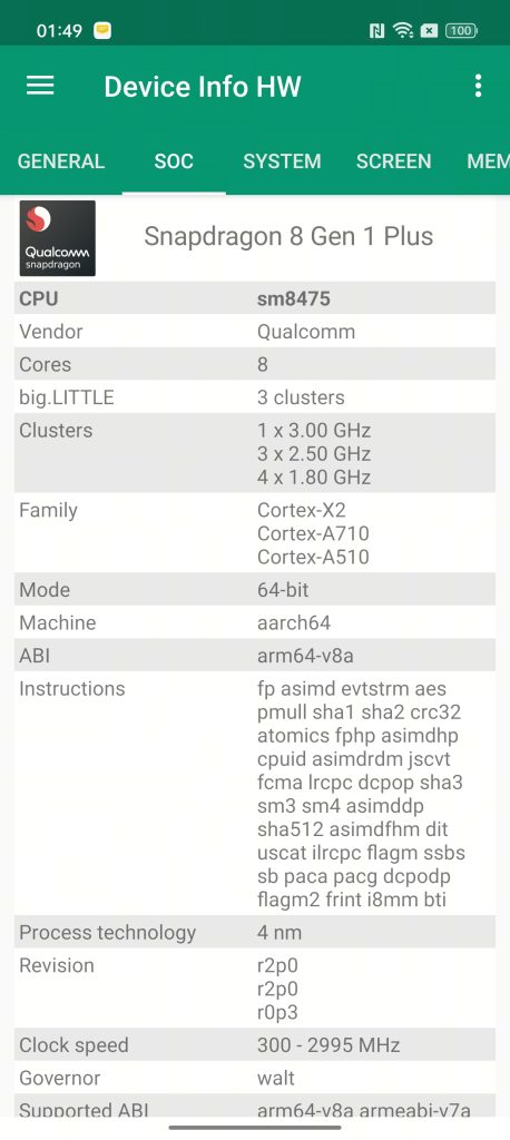 ProcessorQualcomm Snapdragon 8 Plus Gen 1 (4 nm)