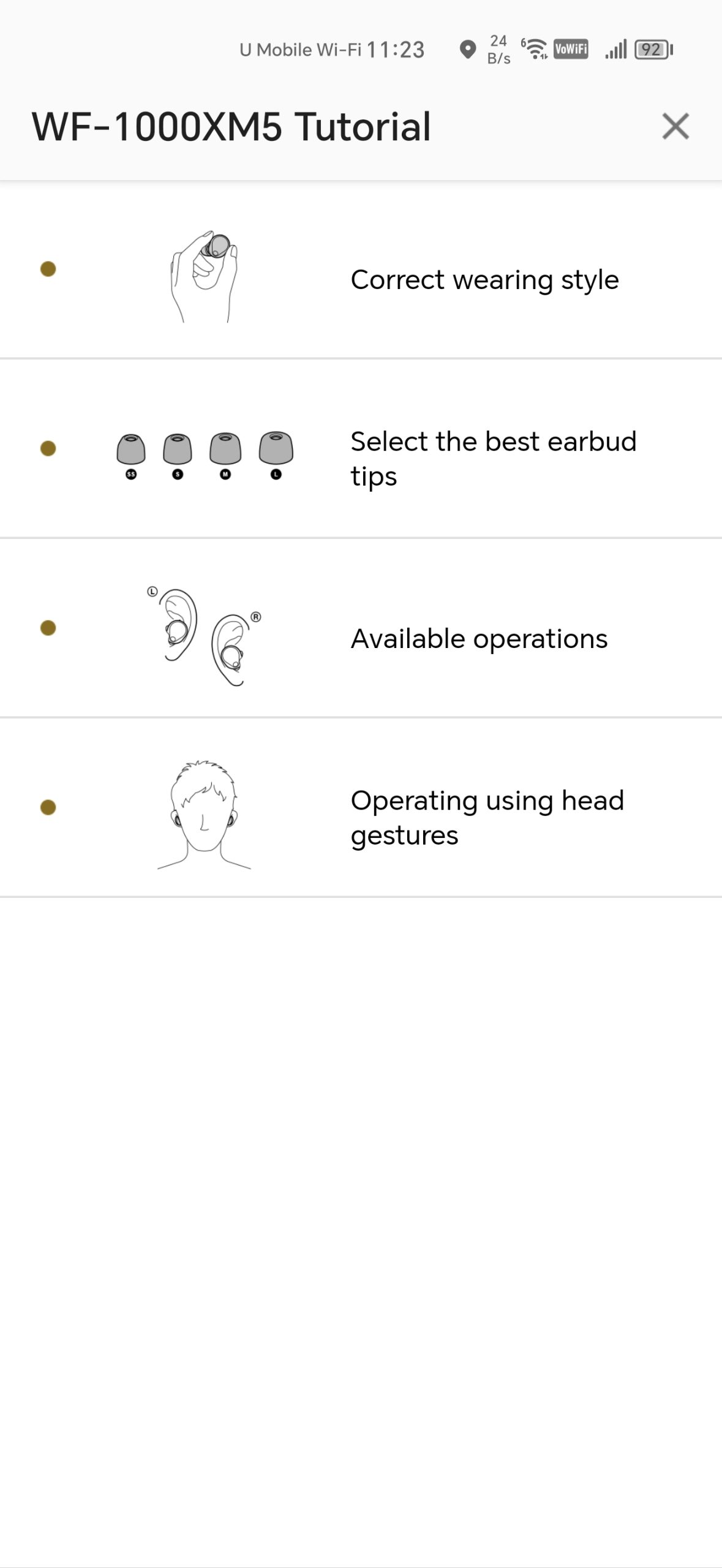 The SONY WF-1000XM5 came with the following