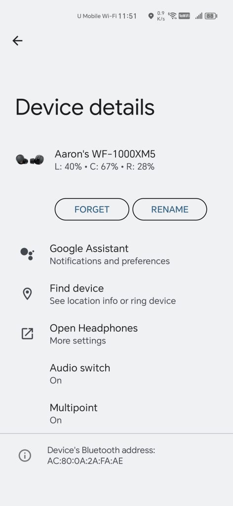 The SONY WF-1000XM5 is connected via Bluetooth 5.x with backwards compatibility within the Bluetooth 5.x specifications; just turn on the Bluetooth on your phone and scan, open up the charging case, take out the Earbuds, and place them to your ears, and it will be connected via a notification on your phone (Android 10 or iOS 11). That easy. The earbuds will recognize each other automatically in stereo mode at the same time, and you may further tune the earbuds settings and functions using the Sony Connect App.