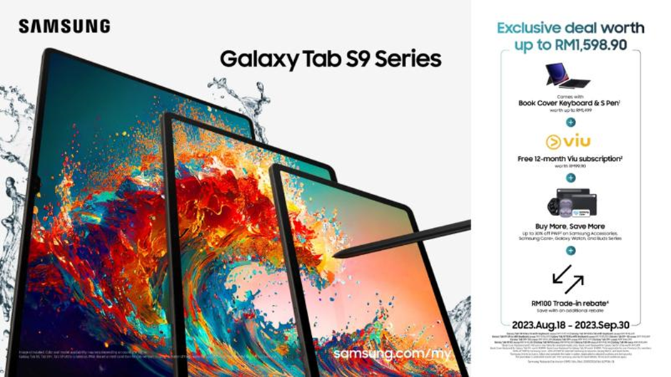 Don’t miss out on this fantastic opportunity to become the proud owner of a Samsung Galaxy Tab S9 and get Exclusive Deals worth up to RM1,598.90 available just till 30 September 2023!