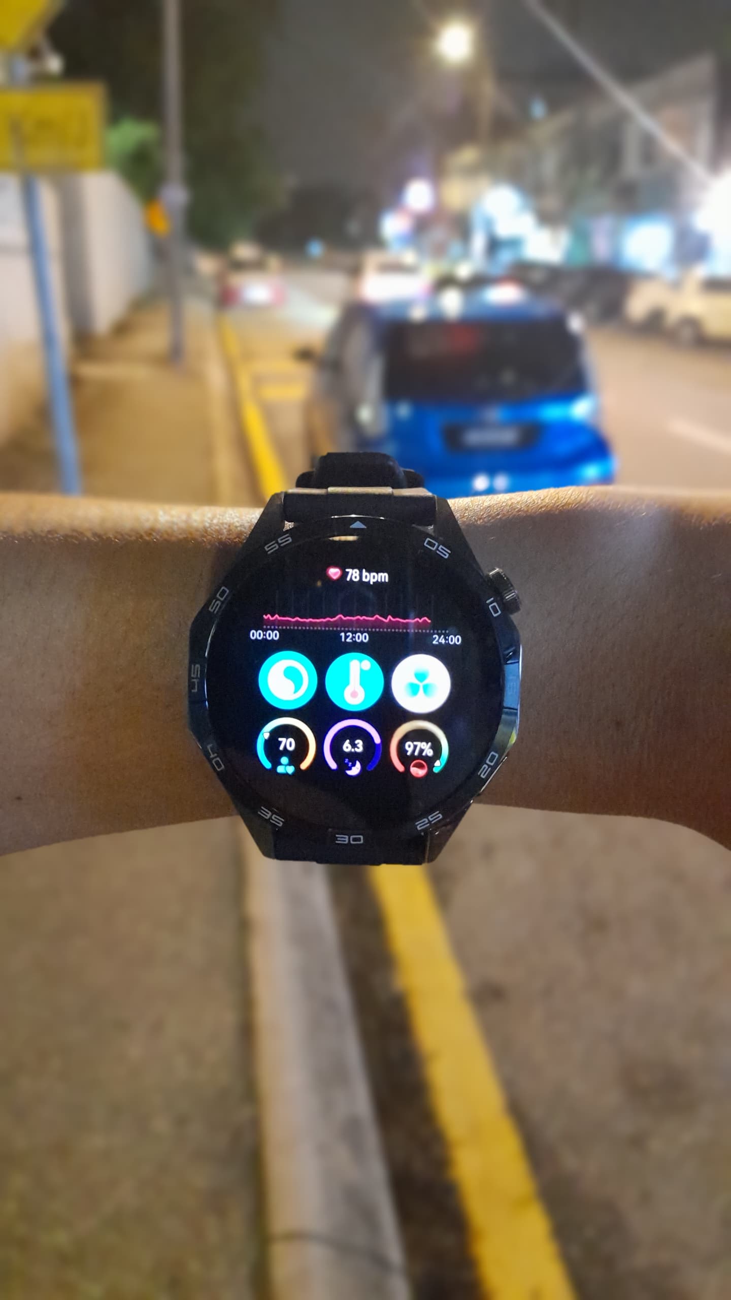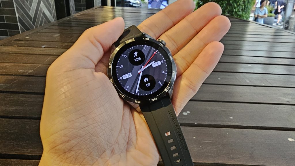The body of the watch is made of a base metal and plastic, but honestly still carries the looks of an ordinary higher end watches out there, and then there’s the strap, which is interchangeable from Fluoroelastomer Strap (which is the one we got) to a leather strap, or you could just get any compatible strap from any retailer shops or online ecommerce portals. Do take note that the Huawei Watch GT4 is compatible with the 22m straps and it’s aint heavy when wearing it, just weighted at 49 grams with 5ATM water resistance.