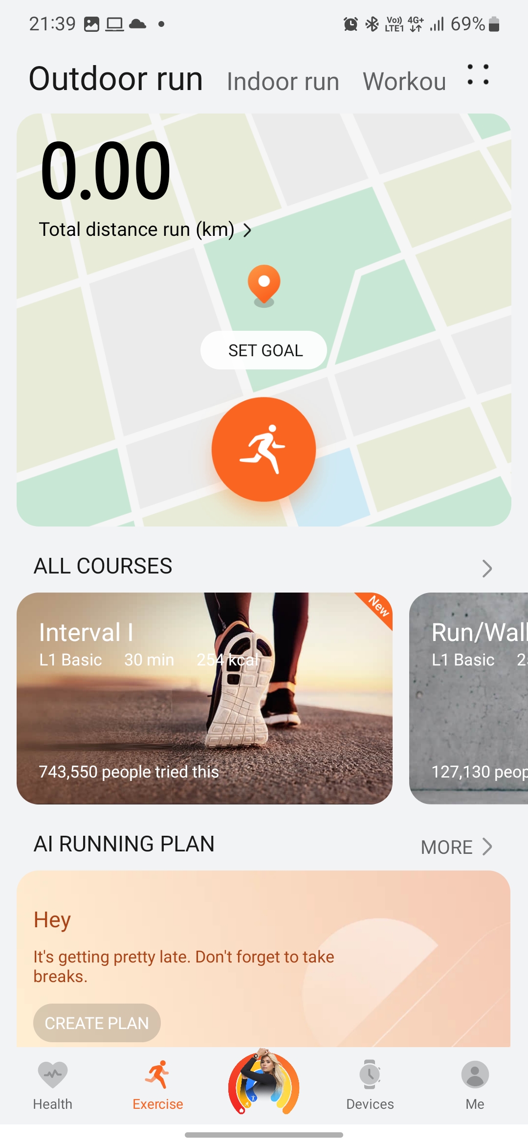 Workout mode : Uses GPS to track movement for outdoors, includes basic modes like cycling and climbing, over 15 modes are predefined and can be used indoors and outdoor as well with the built in acceleration sensor with courses plans.