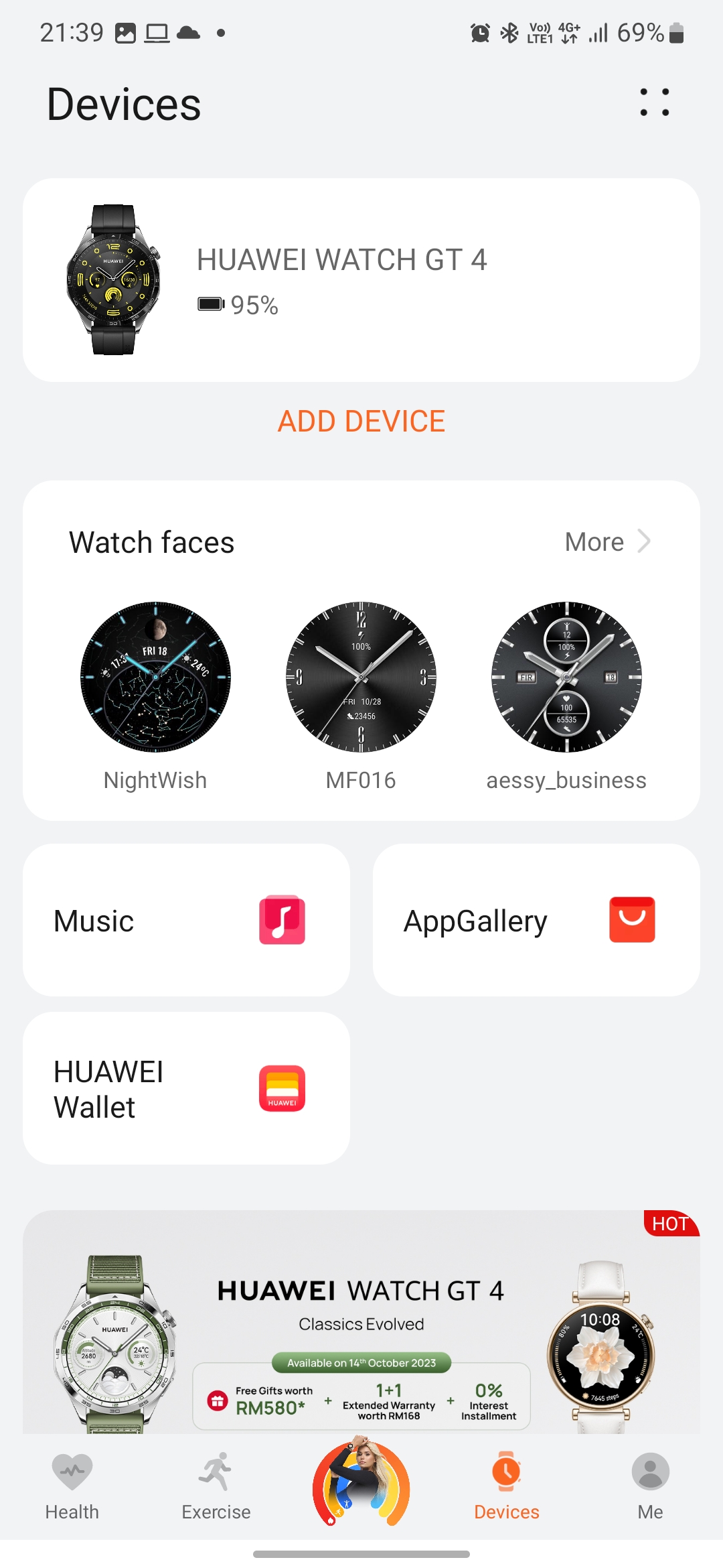 Experience wise, my only feedback is the installation of multiple apps just to connect the watch, but then think of it, pretty understandable since the Watch GT4 is running on HarmonyOS 4 and for the most part, it is still an Android Watch, just not the kind that you can install anything you like, it is all limited to what you have via the AppGallery and Huawei Health App, but it should be more than sufficient for the average joe just by the vanilla mode, as you still can sync all your notifications even replying WhatsApp messages is possible. Workout and health app wise, there is plenty to choose and customize from and the same can be said for the Watch Faces as well, there is just alot to play with to suit the occasions. Battery life wise, it simple can last up to 7 days in normal mode, while setting it to smartwatch only mode can get you almost 14 days, eliminating the need of always charging the watch everyday. Alternatively if you forget to charge, this watch does support wireless charging and it is compatible with most wireless chargers and powerbank out there. Other than that all of the health and sports app functions as intended, with good tracking and accuracy in general and I am satisfied with guides/advice on how to keep your sleep and health in check too.