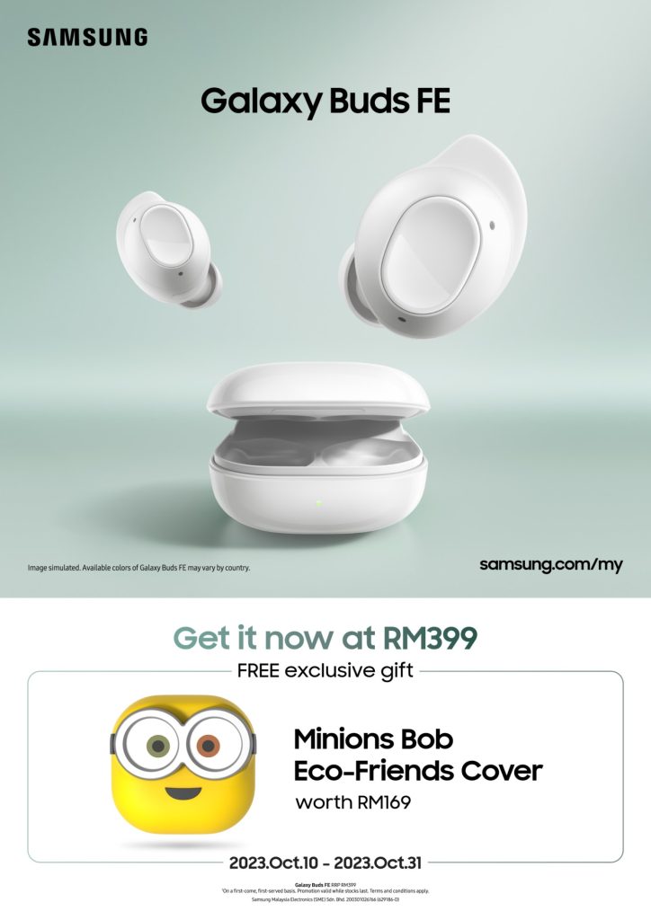 Galaxy Buds FE is retailed RM399 and comes in two colors: graphite and white. Those who buy between 10 and 31 October 2023 will receive a Minion Bob Eco-Friends Cover worth RM169 for free.