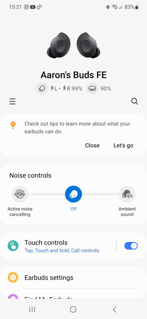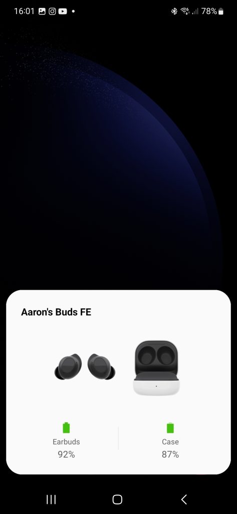 The Galaxy Buds FE is packed with some of the notable features such as active ANC, which can be activated manually or set it at ambient mode, and there is also a earbud fit test where it will detect whether you are wearing it properly. Performance wise , every time when I pick the earbuds up to my ear, it’s connected almost instantaneously, reconnection is quick as the Buds FE does, with very minor latency detected when streaming via YouTube and Spotify. Features include ambient sound support for calls, and in ear detection for calls volume adjustments, all of which can be customized with the Galaxy Wearable App. There is an equalizer setting that is predefined under the Galaxy wearable settings if you need more bass or Treble for your music. Most major audio codecs can be listen and enjoyed with formats compatible such as AAC, FLAC and MQA.