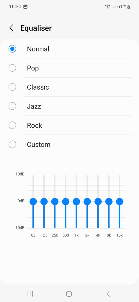 Now lets get to the audio portion, as mention earlier, the Samsung Galaxy S23 FE has 2 speakers, one works as bottom firing and another one located at the earpiece, both were well supported with Dolby Atmos. This will give you access to customized Equalizer settings and also upscaler for a boosted clear listening experience.