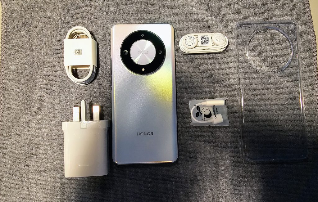 The weight of the HONOR X9b is at 185 g with a thickness of just 8mm, maintaining a good balance when holding and operating with this phone, it does not feel heavy keeping thing minimalistic while all buttons and ports placements including dual microphone, USB C ports for data and charging, SIM slot area and down firing speakers positions remain similar when compared to the HONOR X9a. If you are missing out on the audio jack, fear not, earphone and 3.5mm converter adaptor is included so you can still use any of your wired headphones.