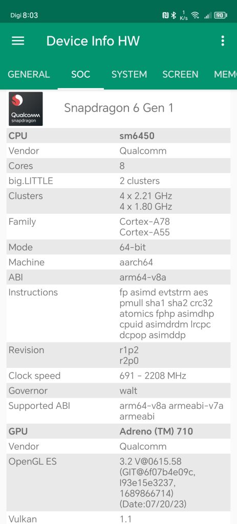 Processor Qualcomm SM6450 Snapdragon 6 Gen 1 (4 nm) 5G