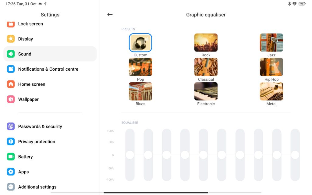 Audio is simply one of the loud and sounding good, since it has Dolby Atmos tuned it, along with the quad speaker setup, this gives you an immersive experience when viewing certified Widevine L1 contents from Netflix or Disney+. Additionally from the sound settings user can also choose from multiple pre-determined equalizer which Xiaomi is kind enough to include such features for it’s users.