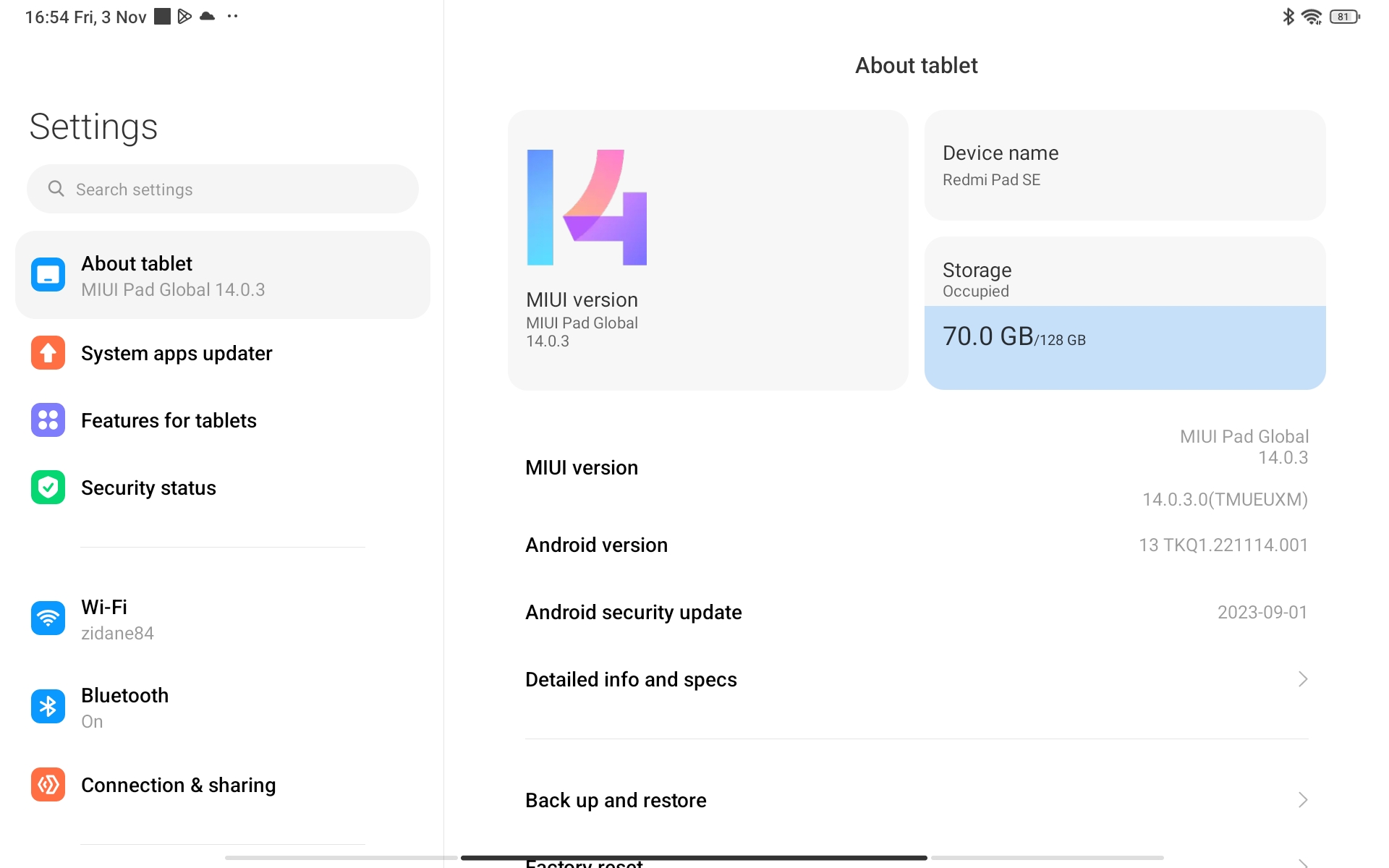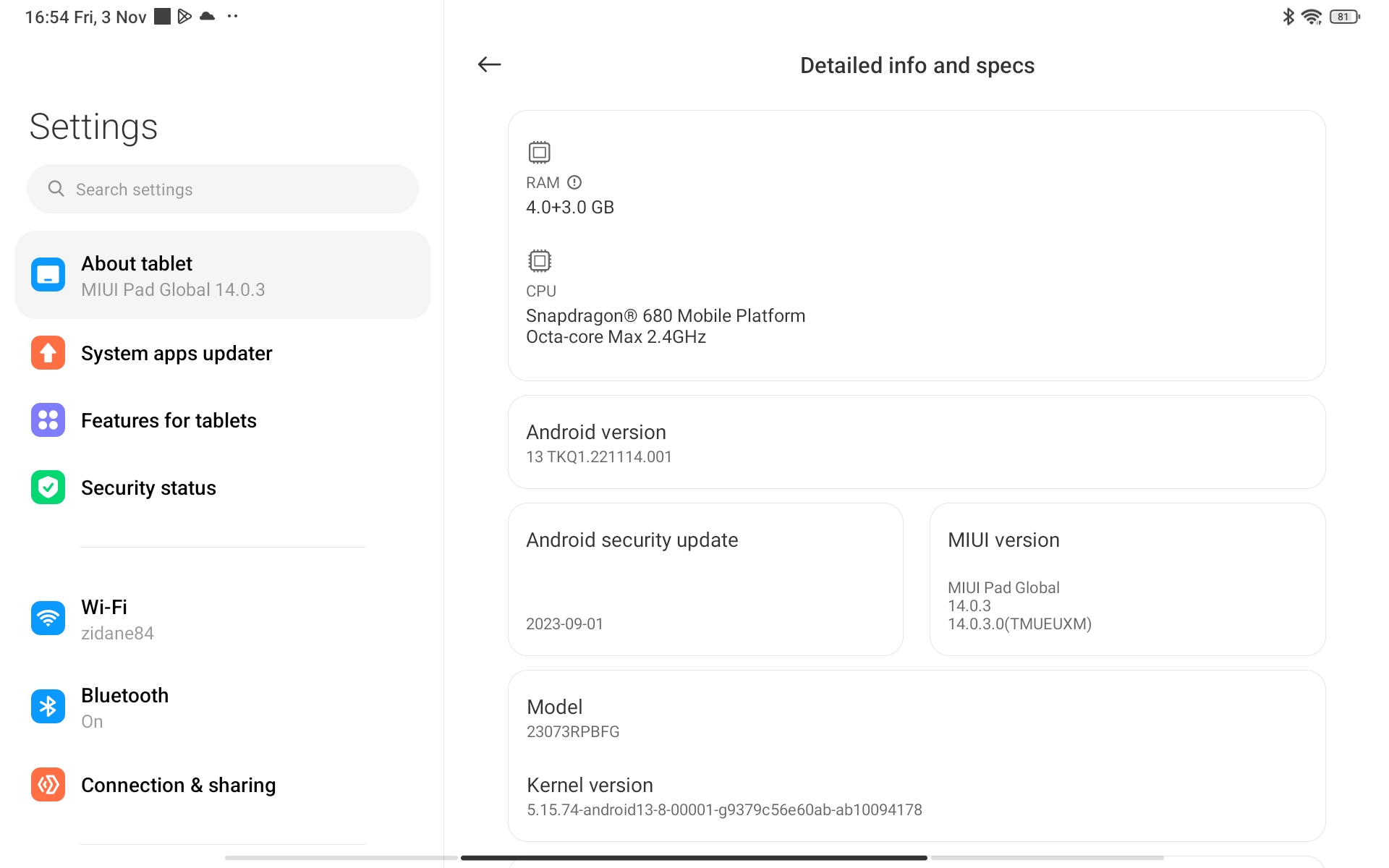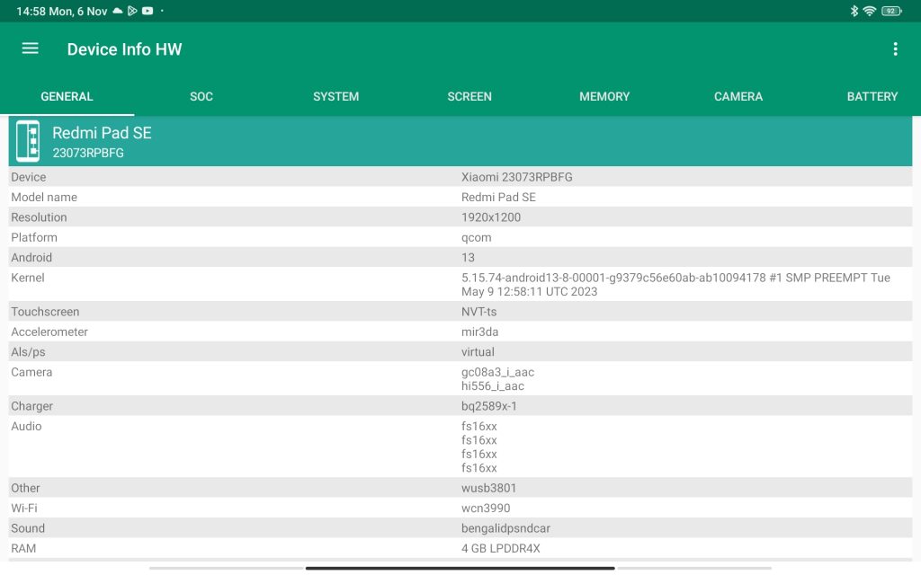 | OS + UI | Android 13 + MIUI 14 for Tablet |