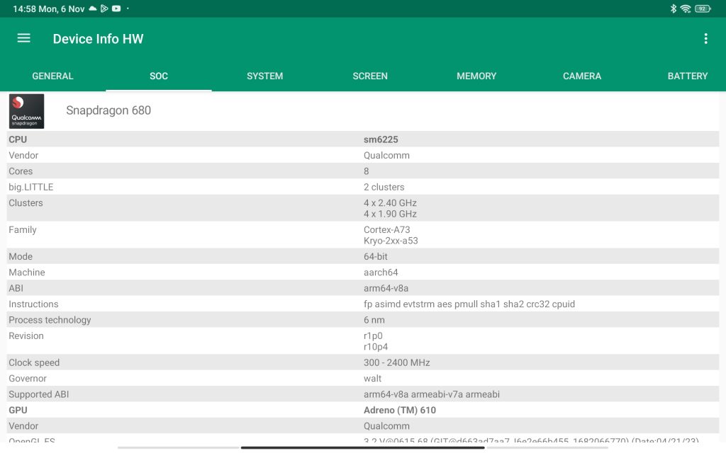 | Processor | Qualcomm Snapdragon 680 4G (6 nm) |